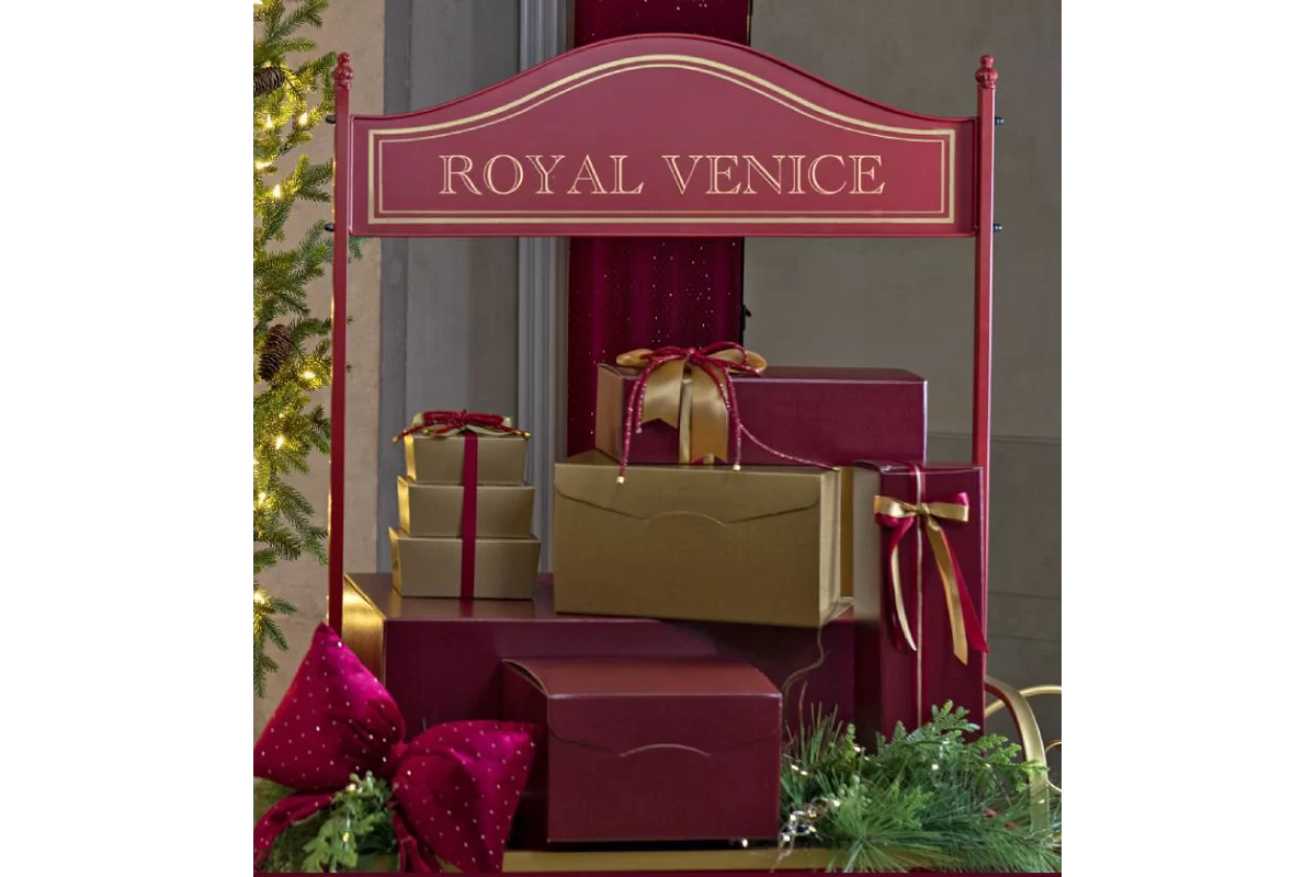 Kinkekarpide kollektsioon on inspireeritud kuninglikust Veneetsiast ja ajatust elegantsist, mis on juurdunud Veneetsia traditsioonidesse. See stiil tekitab ajalooliste paleede ja rikkalikult kaunistatud saalide rafineeritud atmosfääri, kus kohtuvad luksus, kunst ja ajalugu. Paletti domineerivad burgundiapunased ja kuldsed toonid, mis peegeldavad Veneetsia stiilile iseloomulikku sameti, väärismetallist tekstiilide ja kullatud detailide rikkust, luues rafineeritud ja kuningliku esteetika, mis on tihedalt seotud linna pärandiga. See stiil tähistab klassikalist ja teatraalset võlu, mis on Veneetsiat sajandeid iseloomustanud.