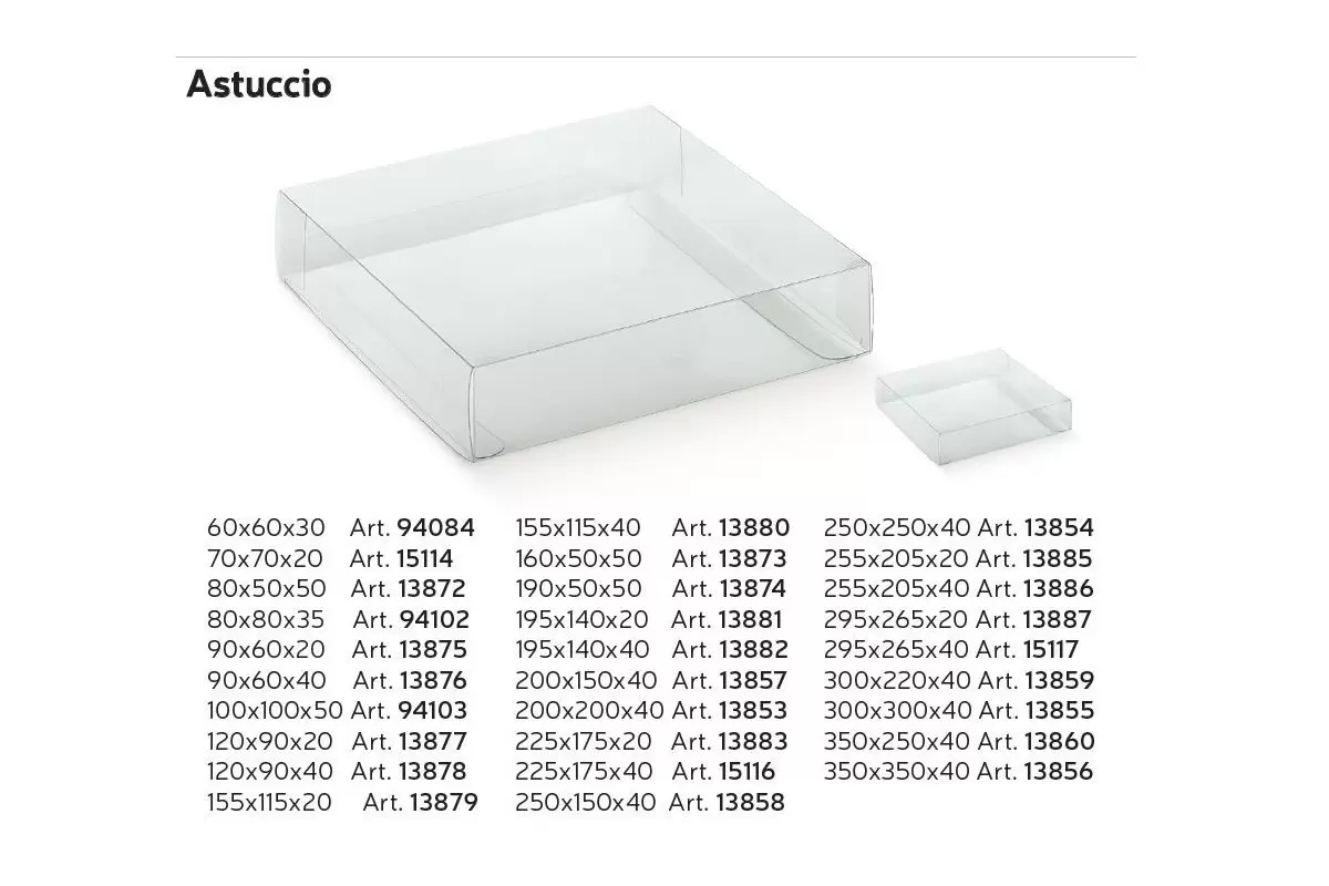 Läbipaistev ruudukujuline karp, mis sobib maiustuste, tekstiili ja muude kaupade pakendamiseks. Müüakse alates 1 tk. Suuremate koguste puhul 50, 100 või 200 tükki pakendis, sõltuvalt karbi suurusest. Tootepildil on näidatud kõik saadaolevad suurused koos tellitavate artiklitega. Hind on 1 tüki kohta ja madalam ühikuhind sõltub ostetud kogusest. Tabelis näidatud kogustest suuremate koguste ostmiseks võtke meiega hinnapakkumise saamiseks ühendust > Kontakt.