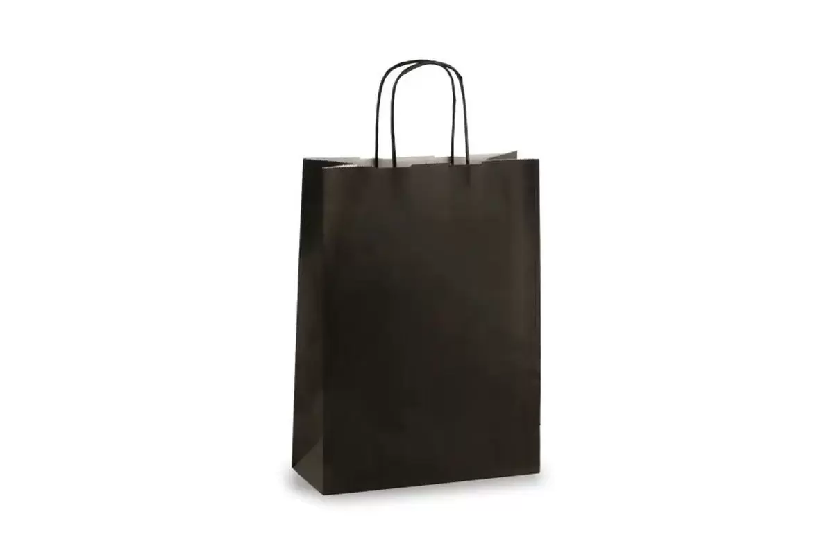 Must paberkott, millel on keeratud Twsit-tüüpi paberist käepidemed.