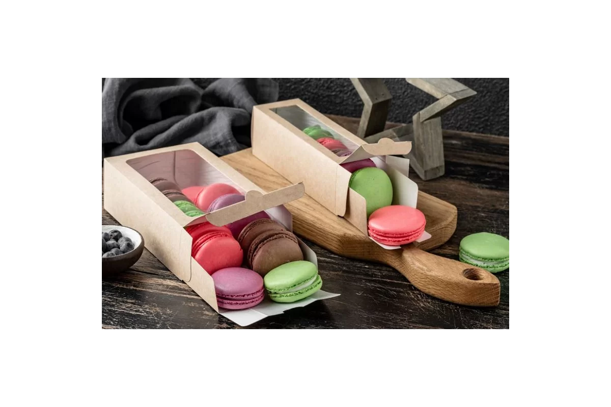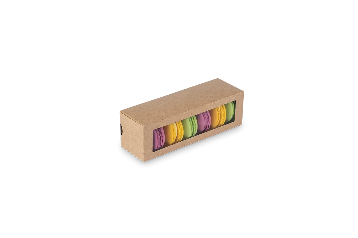 Eco Macarons kastīte ar caurspīdīgu logu 180x55x55mm