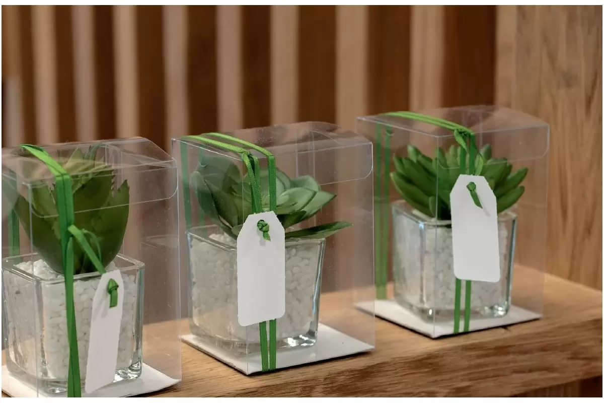 Skaidri pvc. dovanų dėžutė, vienos dalies, vientisu uždarymu ir papildomai pasirenkamu dėžutės dugno įdėklu.